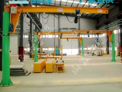 移动式悬臂吊更具灵活机动、适应性广等特点,是高效自动生产线上必备的单独应急吊装设备,有了它能确保生产线畅通无阻。